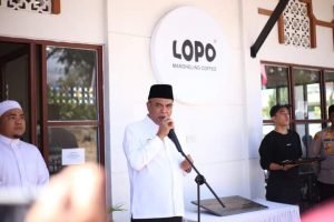 AEK GODANG(Malintangpos Online): Bupati Mandailing Natal HM Ja’far Sukhairi Nasution, meresmikan Lopo Mandheling Coffee di Kompleks Masjid Agung Nur Ala Nur Panyabungan, Jumat (12/8) siang.