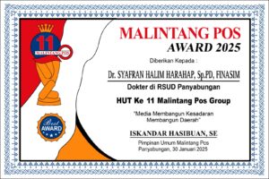 Insya Allah, Rabu 29 Januari 2025 Media Malintang Pos, akan diperingati secara sederhana di Aula Rindang Hotel Panyabungan, dengan Agenda Tahunan Pemberian Anugrah Malintang Pos Award kepada Putra – Putri terbaik Tapanuli Bagian Selatan ( Tabagsel ) Provinsi Sumatera Utara yg di HUT Ke – 11 Tahun 2025, mendapat Award 11 Orang.