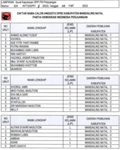 Misalnya, untuk Dapil 1 ( Panyabungan, Panyabungan Barat dan Panyabungan Timur) ada 10 Calon Legislatif dan Nomor 1 adalah Ahmad Aldino Yusuf ( Aldino atau Dino FM) yang sehari -hari Menjadi Wartawan dan memang Politisi Muda dan gigih dan dikenal luas di Mandailing Natal.