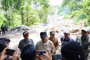 Bupati menjelaskan, tumpukan sampah di pinggir jalan tersebut terjadi karena material longsor menimbun badan jalan akibat intensitas hujan yang tinggi pada akhir November 2025. Akibatnya, truk pengangkut sampah tidak bisa mencapai pusat TPA.