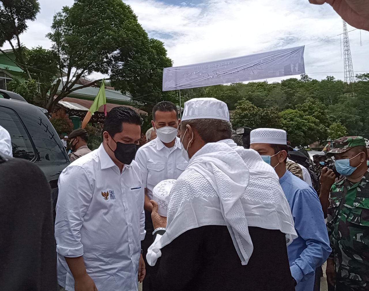 Laporan Wartawan Malintang Pos Group Dita Risky Saputri,SKM, Melaporkan rombongan Menteri BUMN Erick Thohir dan Wagubsu Musa Rajeckshah dilokasi Lapangan Komfi B Yonif 123/RW Manggadua Desa Parbangunan Kec.Panyabungan. disambut langsung Wakil Ketua DPRD Sumut Harun Nasution dan Pihak Komfi B Yonif 123/ RW Manggadua.