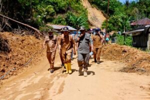 SITAHUIS(Malintangpos Online): Pangdam I/Bukit Barisan Mayjen TNI Hendy Antariksa didampingi Bupati Tapanuli Tengah (Tapteng) Masinton Pasaribu, SH, MH, meninjau ruas Jalan Sibolga – Tarutung km 8 Dusun II, Desa Simaninggir Kecamatan Sitahuis, Tapteng, Selasa, (23/12/2025).