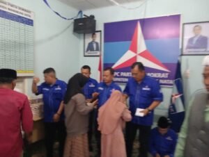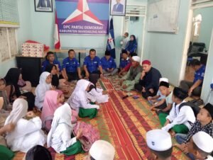 Kegiatan penyantunan anak yatim berlangsung di Sekretariat DPC Demokrat Madina di jalan Willem Iskandar nomor 14, Desa Pidoli Lombang, Kecamatan Panyabungan, Selasa (9/9/2025).