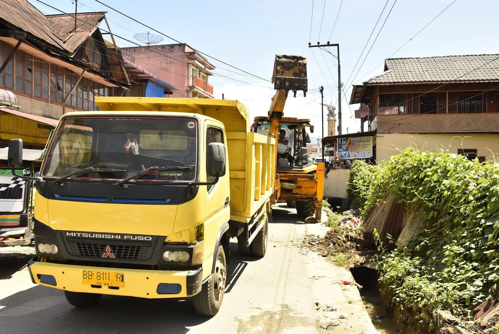 PANYABUNGAN(Malintangpos Online):Pemerintah Kabupaten (Pemkab) Mandailing Natal (Madina) menurunkan alat berat jenis backhoe loader untuk memperbaiki drainase di Pasar Lama Panyabungan.