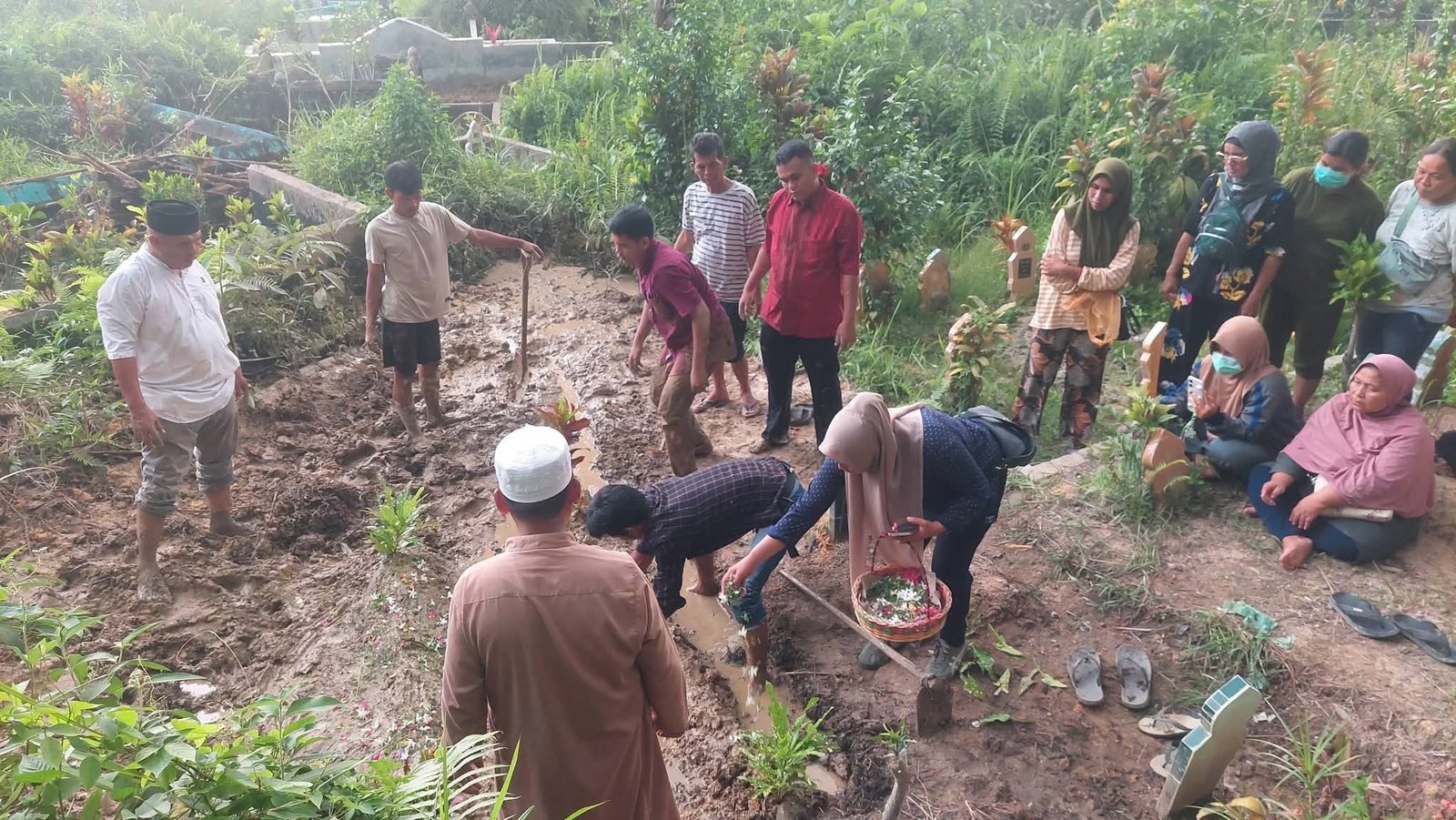 Prosesi pemakaman berlangsung secara sederhana namun khidmat, mencerminkan solidaritas antara pemerintah dan masyarakat dalam menghadapi musibah(Info/Dita)