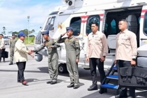 Setelahnya, Presiden langsung melanjutkan perjalanan menuju Kabupaten Tapanuli Selatan dengan menggunakan Helikopter Caracal TNI AU.