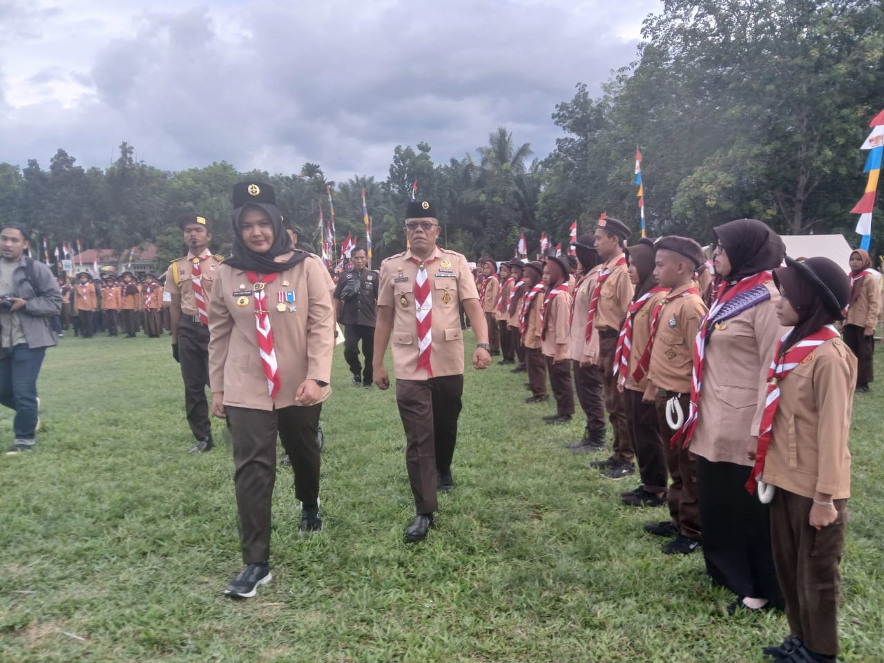 BUKIT MALINTANG(Malintangpos Online):  Wakil Bupati Mandailing Natal Atika Azmi Utammi Nasution, membuka Jambore PerJuSami( Perkemahan Jumat Sabtu Minggu) Pramuka Kwarran Bukit Malintang Tahun 2024 di lapangan Kantor Camat, Jumat(06/09)