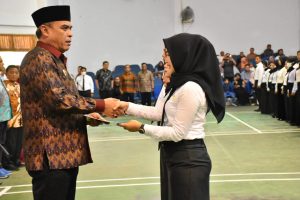 PANYABUNGAN(Malintangpos Online): Bupati Mandailing Natal Muhammad Jakfar Sukhairi Nasution, berpesan kepada peserta yang sudah di angkat menjadi P3K semoga amanah yang di berikan bisa menjadi momentum untuk meningkatkan kualitas dunia pendidikan.