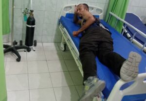 Namun, naas hujaman senjata tajam dari pelaku mengenai bagian punggung dan mengakibatkan luka menganga dan dilarikan ke RS Armina Madina dan mendapat 6 kali jahitan pada luka yang dialami.