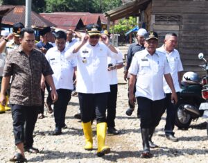 SOSA JULU(Malintangpos Online): Pj Bupati Padang Lawas, Dr. Edy Junaedi, S.STP, M.Si meninjau lokasi terdampak banjir akibat luapan Sungai Sosa yang telah merendam 168 rumah warga dengan ketinggian 50 cm.