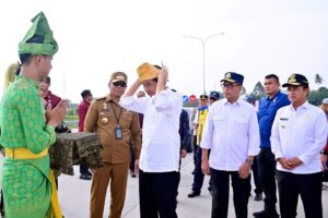 TEBING TINGGI(Malintangpos Online): Penjabat (Pj.) Wali Kota Tebing Tinggi Drs. Syarmadani, M.Si mendampingi Presiden Republik Indonesia (RI) Ir. H. Joko Widodo meresmikan dua ruas jalan tol Trans Sumatera, yakni jalan tol ruas Kuala Tanjung-Tebing Tinggi-Parapat seksi Tebing Tinggi-Indrapura, dan jalan tol ruas Indrapura-Kisaran seksi Indrapura-Limapuluh di Gerbang Tol Limapuluh, Kabupaten Batubara, Provinsi Sumatra Utara, Rabu (07/02).