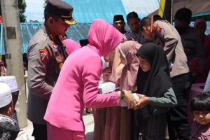 Diakhir acara juga Penyerahan Tali Asih kepada Anak Yatim Piatu Kecamatan Panyabungan Timur oleh Kapolres didampingi Bupati, Ketua DPRD, Forkopimda Mandailing Natal dan Ketua Bhayangkari Cabang Mandailing Natal.(Tribrata/Aris)