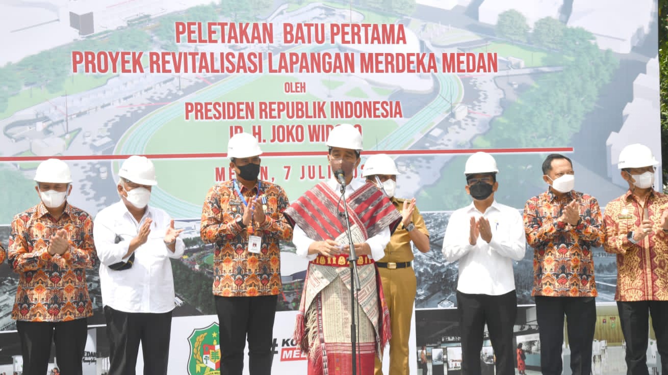 MEDAN(Malintangpos Online): Presiden Joko Widodo secara resmi mencanangkan revitalisasi Lapangan Merdeka di Kota Medan, Provinsi Sumatra Utara, pada Kamis, 7 Juli 2022.