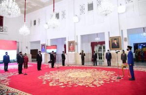 Hadir dalam pelantikan tersebut sejumlah tamu undangan terbatas dan tetap menerapkan protokol kesehatan di antaranya Wakil Presiden Ma’ruf Amin, Menteri Pertahanan Prabowo Subianto, Kapolri Jenderal Pol. Idham Azis, dan Sekretaris Kabinet Pramono Anung(PDIP/Isk)