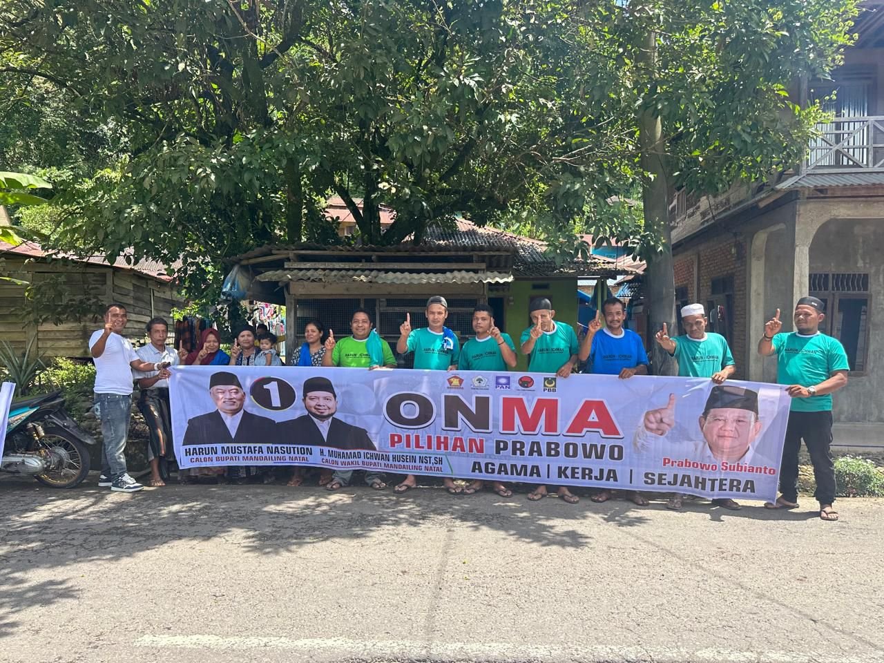 “Tim relawan nomor urut 1 “On Ma” Kecamatan Linggabayu siap menangkan Harun-Ichwan menjadi Bupati dan Wakil Bupati Madina 2024-2029. “On Ma .. On Ma”.teriak mereka dengan semangat( Rel/Dita)