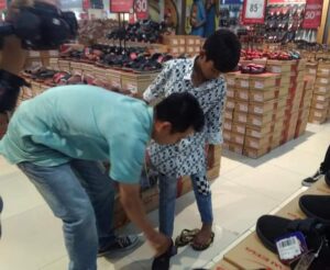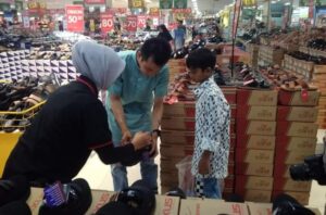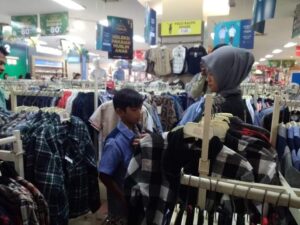 Setiba di pusat perbelanjaan, Keisha Alvario (10) memilih baju untuk dikenakan di Hari Raya dan sepasang sepatu untuk sekolah. Sementara sang kakak, Rasel Junifa (13), memilih baju untuk dikenakan di Hari Raya Idulfitri nanti.