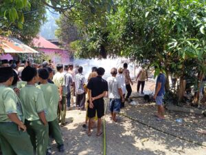 Warga yang berada di sekitar lokasi sempat berupaya memadamkan api dengan peralatan seadanya, namun material bangunan yang mudah terbakar membuat api sulit dikendalikan.