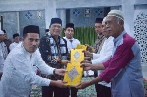 memberikan bantuan berupa Al-Qur’an kepada Masjid Al-Ikhlas serta bingkisan hadiah dari Ikatan Keluarga Nasution.