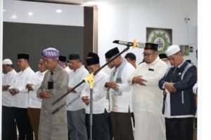 PANYABUNGAN(Malintangpos Online): Pejabat Pemerintah Kabupaten Mandailing Natal (Madina) menggelar Salat Istighosah, Zikir dan Doa bersama di Pendopo Rumah Dinas Bupati Madina di Desa Parbangunan, Panyabungan, Selasa (16/12/2025).