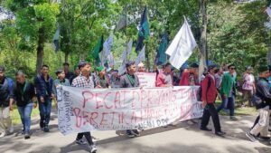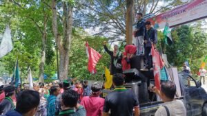 Sekitar pukul 10.45 Wib, Mahasiswa Cipayung Plus sambil ber Orasi, bergerak menuju Gedung DPRD, dengan pengawalan ketat Polisi dan TNI – AD.
