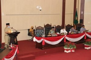 MEDAN(Malintangpos Online): Pelaksana tugas (Plt) Wali Kota Medan Ir H Akhyar Nasution MSi membacakan Nota Pengantar Kepala Daerah Terhadap Rancangan Peraturan Daerah (Ranperda) Kota Medan Tentang Laporan Pertanggungjawaban (LPJ) Pelaksanaan Anggaran Pendapatan Belanja Daerah (APBD) Kota Medan Tahun Anggaran (TA) 2019 dalam rapat paripurna yang berlangsung di Gedung DPRD Medan, Senin (15/6). Diharapkan, para wakil rakyat dapat mengkoreksi serta memastikan bahwa pengelolaan keuangan daerah selama T.A 2019 telah dilaksanakan secara berdaya guna, berhasil guna sekaligus transparan dan akuntabel.Nota pengantar itu disampaikan Akhyar kepada Ketua DPRD Medan Hasyim SE, para wakil ketua yakni Ihwan Ritonga, HT Bahrumsyah dan Rajuddin Sagala. Lalu para anggota dewan dan pimpinan organisasi perangkat daerah (OPD) di lingkungan Pemko Medan melalui sambungan video conference (Vidcon) guna mengikuti penerapan protokol kesehatan.