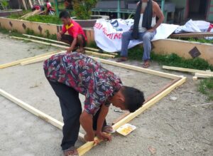 Sejumlah warga Kelurahan Kotasiantar, Panyabungan, Madina, gotong-royong mendirikan baliho, Senin sore kemarin (3/6). Isinya, teks “Patujoloon Mandailing” dan foto tokoh Kadin Indonesia asal Desa Alahankae, Ulu Pungkut, Madina, H Ivan Iskandar Batubara selaku Ketua Program.