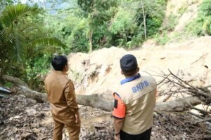 SIBOLGA(Malintangpos Online): Wali Kota Sibolga, Akhmad Syukri Nazry Penarik, bersama Wakil Wali Kota Sibolga, Pantas Maruba Lumban Tobing, meninjau langsung lokasi tanah longsor di Kelurahan Aek Parombunan, Kecamatan Sibolga Selatan, pada Selasa (06/01).