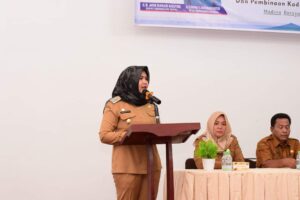 PANYABUNGAN(Malintangpos Online): Wakil Bupati Mandailing Natal, Atika Azmi Utammi Nasution membuka kegiatan Sosialisasi Peraturan Bupati dan Pembinaan Kader Pembangunan Manusia (KPM) di Ballroom Ladang Sari, Panyabungan, Selasa (25/6).