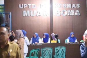 Sebelum menuju wilayah Pantai Barat, Wabup Atika terlebih dahulu singgah di Puseksmas Muara Soma Kecamatan Batang Natal.