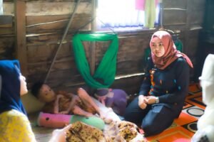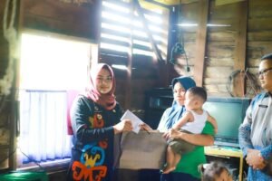 PANYABUNGAN(Malintangpos Online): Wakil Bupati Mandailing Natal, Atika Azmi Utammi Nasution menjenguk Muhammad Raihan (11 tahun), warga Desa Kampung Padang Kecamatan Panyabungan, yang mengalami kelainan genetik berakibat kulit melepuh.