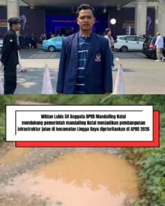 LINGGABAYU(Malintangpos Online): Anggota DPRD Mandailing Natal, Wildan Lubis, S.H., sangat mendukung Pemerintah untuk menjadikan pembangunan Infrastruktur jalan di Lima(5) Desa Kecamatan Linggabayu, sebagai Skala prioritas dalam APBD Tahun Anggaran 2026 mendatang ini.