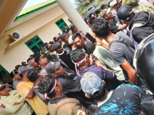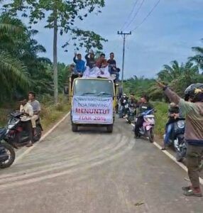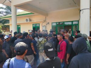 Ratusan massa terlihat berbondong bondong menggeruduk kantor PT. DIS untuk menuntut hak Plasma masyarakat sebesar 20 persen dari luas HGU.
